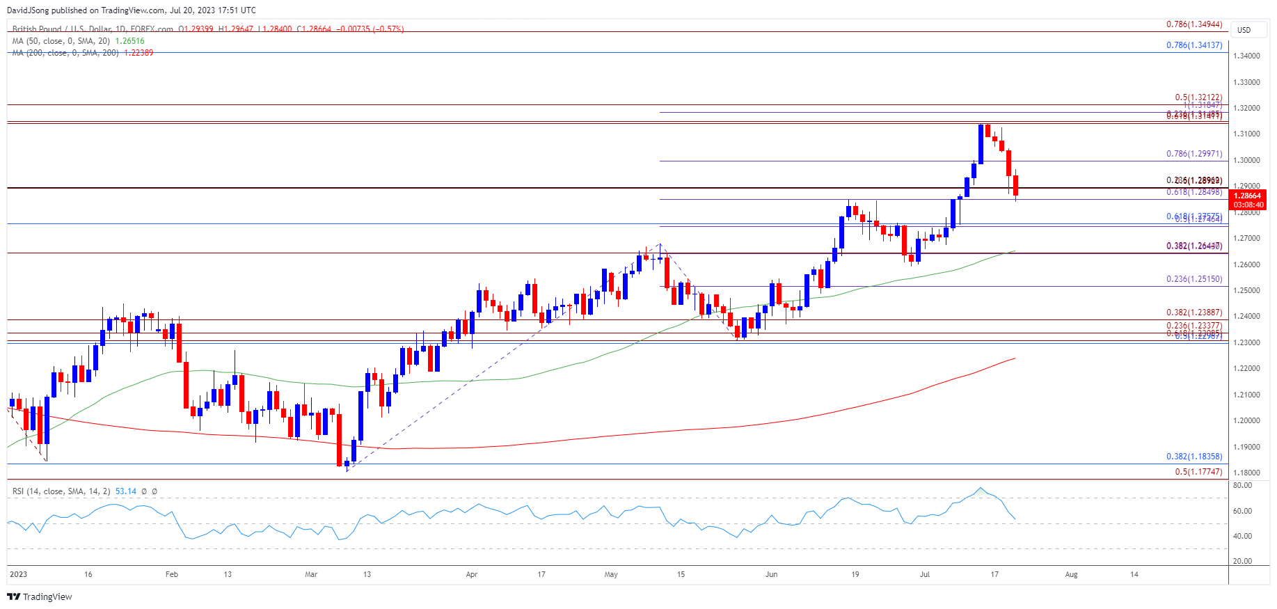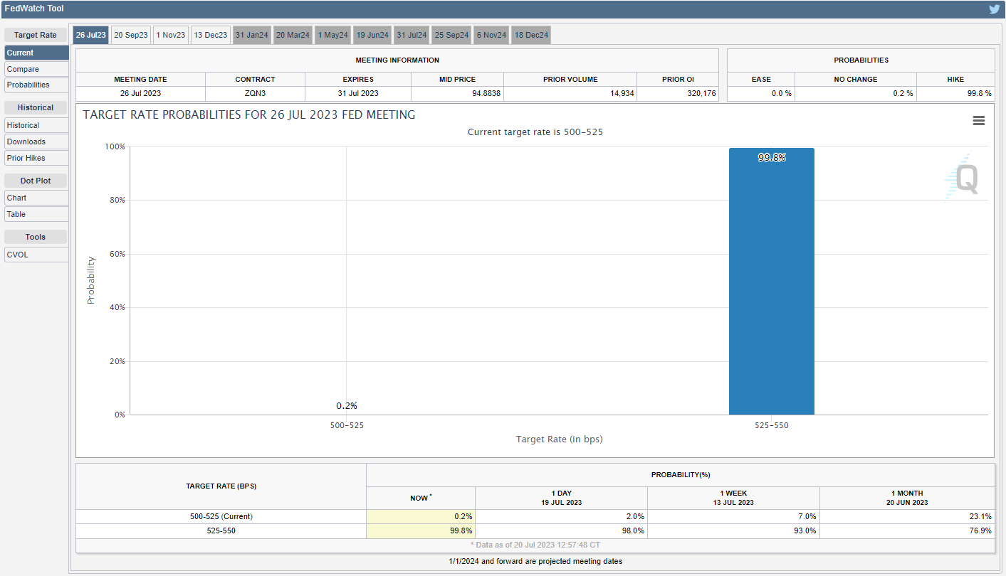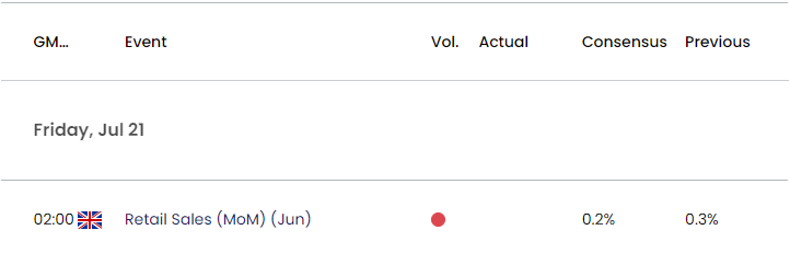 在此之前,预计726日的FOMC利率决议可能对英镑/美元产生影响。市场普遍预计美联储将加息25个基点,然而,随着美联储的加息周期看似即将结束,市场参与者可能会更为关注货币政策的前瞻性指引。